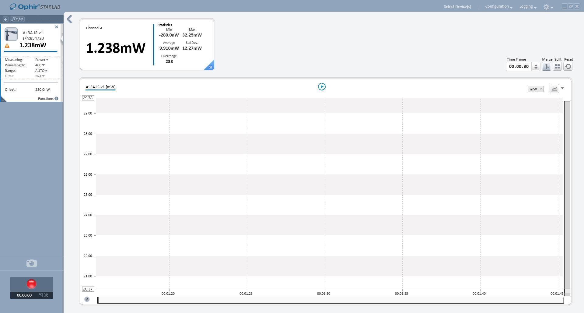 單色儀設(shè)置 400nm 波長(zhǎng)曲線