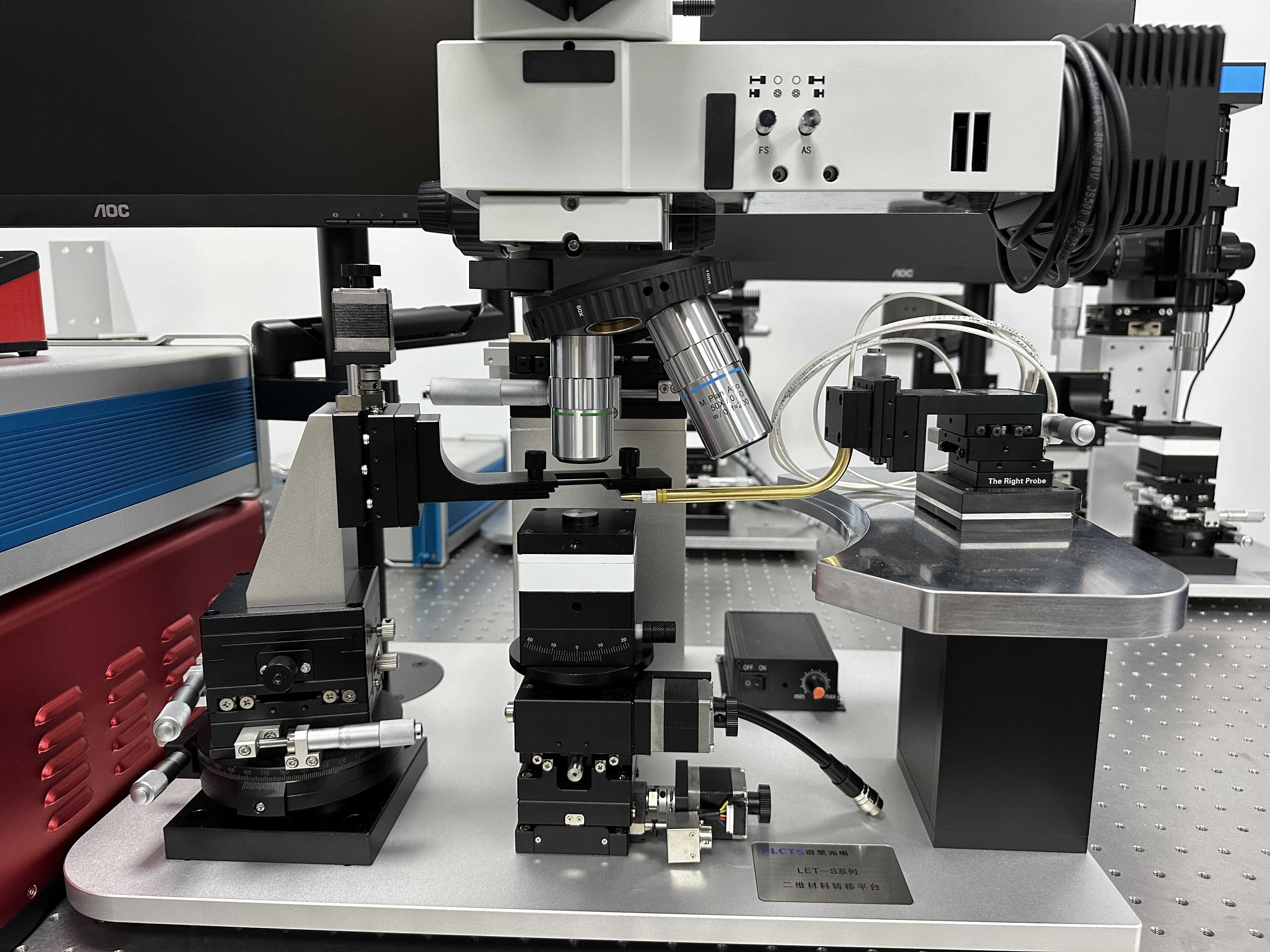 a) PVOM系統(tǒng)示意圖,包含光學顯微鏡和探針操縱裝置。
