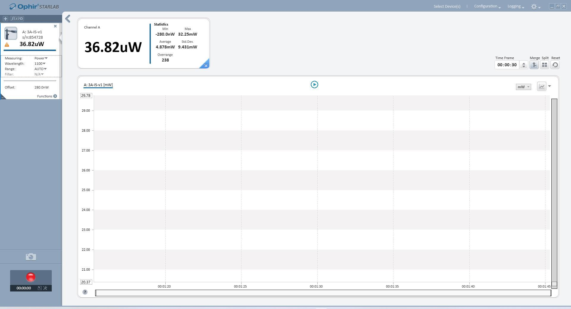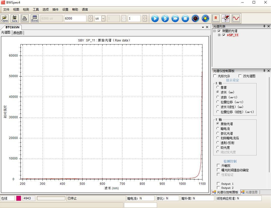 單色儀設(shè)置 1100nm 波長(zhǎng)曲線